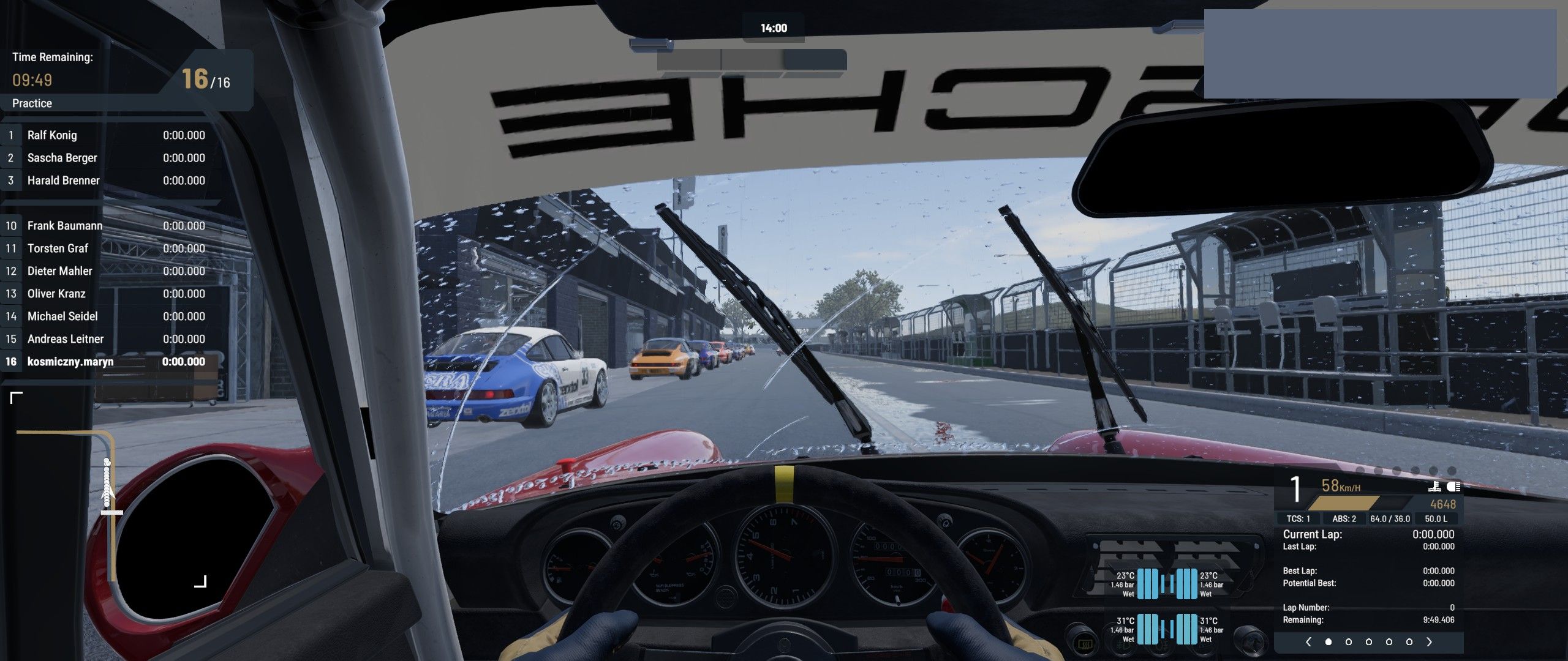 And the driving experience is quite good. The physics seem really solid, definitely aimed at sim racing fans and those who love hardcore challenges, rather than casual Sunday drivers. The number of options available for adjusting the car setup is also impressive. The only advertisements for the game that I see online have the slogan "Bring your earplugs," and indeed – the engine sounds are simply amazing! This can be treated as a hallmark of the GTR series, and here it continues to impress. On the track, you can feel every bump, every curb, every moment you drive onto the grass, and the difference between optimal tire temperature and overheated rubber. However, with the Porsche 964, I did feel a bit like I was controlling a camera on a drone – the effects weren't as noticeable or detailed, and I suspect that with such a large number of cars, some of them are replicated with slightly less accuracy. This is also evident in the appearance of the cockpits, which can vary in texture quality.